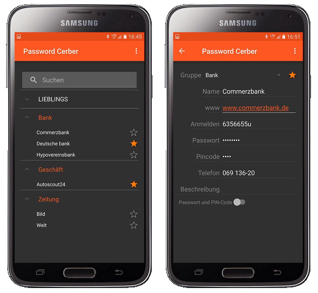 Das Passwort für die Anwendung sollte für den maximalen Schutz der gespeicherten Passwörter, die oft zur Bestätigung finanzieller Transaktionen dienen, lang sein. Das Passwort für die Anwendung ist das einzige Passwort, das Sie sich merken müssen. Die anderen Passwörter sind sicher in Anwendung gespeichert. Wir empfehlen, dass das Passwort mindestens 10 Zeichen lang ist und Groß- / Kleinbuchstaben, Zahlen und Sonderzeichen enthält.
